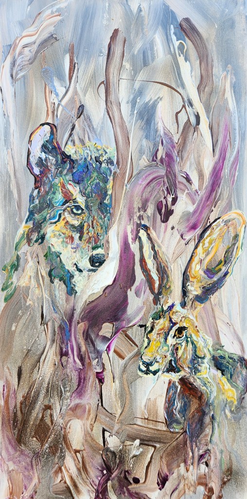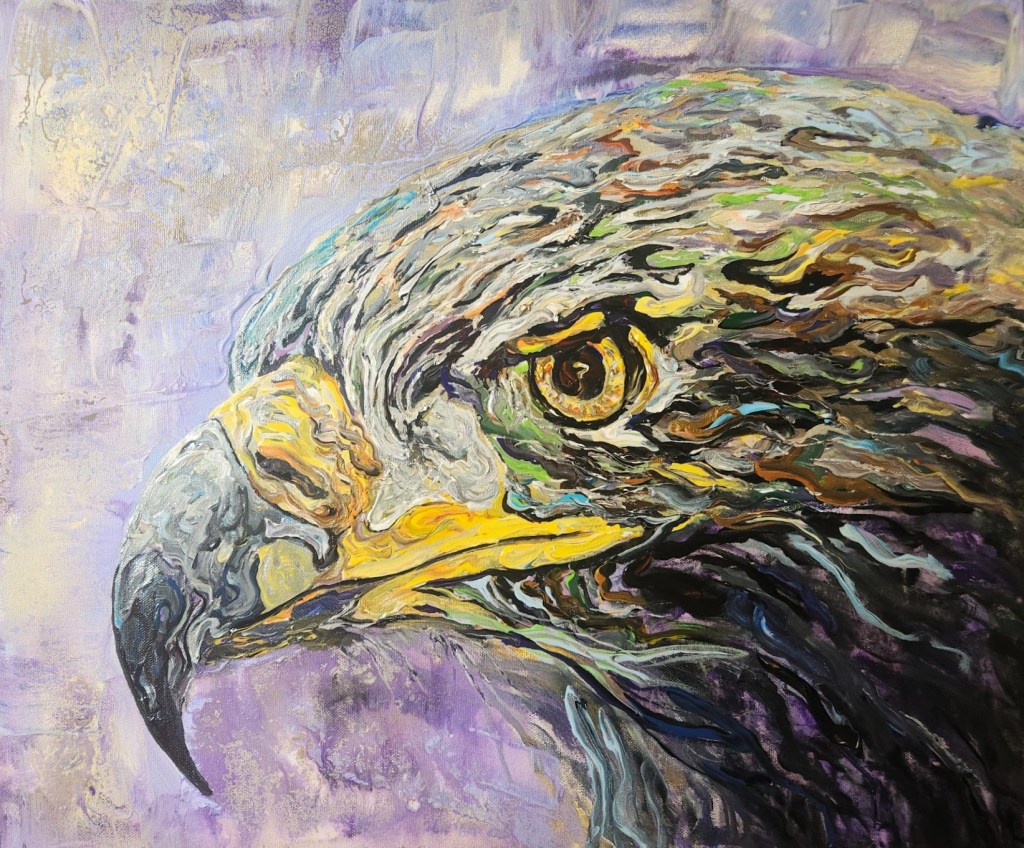 Bison 24″x36″, acrylic on gallery canvas – $900 (CDN) or $630 (US)On the Prowl 48″x24″, acrylic on gallery canvas – $1200 (CDN) or $800 (US)Stalk (Wolf and Hare) 15″x30″, acrylic on gallery canvas – $560 (CDN) or $400 (US)Bobcat 24″x24″, acrylic on gallery canvas – $720 (CDN) or $500 (US)Eagle 24″x20″, oil over acrylic on gallery canvas – $720 (CDN) or $500 (US)Tired (Grizzly) 32″x16″, oil over acrylic on gallery canvas – $640 (CDN) or $450 (US)My Guide (Hawk) 36″x24″, oil over acrylic on gallery canvas – $900 (CDN) or $600 (US)Howl (Wolf) 16″x32″, acrylic on gallery canvas – $640 (CDN) or $450 (US)Unfriendly Neighbours 36″x24″, acrylic on gallery canvas – $900 (CDN) or $630 (US)Confidence (Cougar) 30″x40″, acrylic on gallery canvas – $1200 (CDN) or $900 (US)